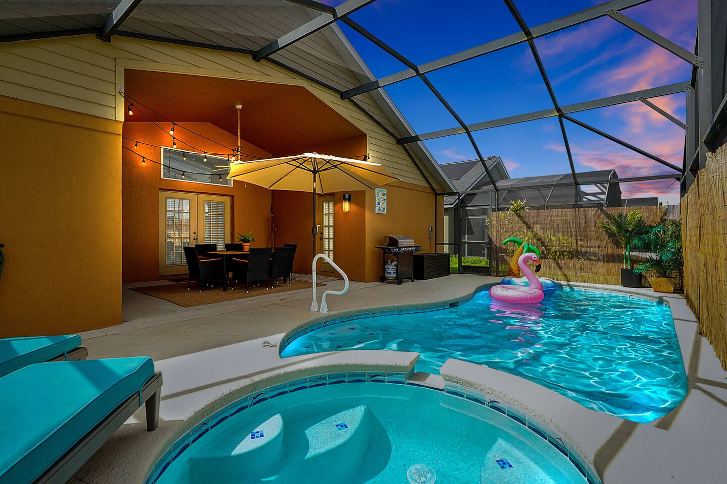 The Chateau – Ultimate Disney-Area Getaway Whether you’re planning a multi-family vacation, a reunion with friends, or a special celebration, The Chateau is more than a place to stay—it’s your private escape in the heart of Central Florida. 🏡 Property Highlights Two luxurious master suites with en-suite bathrooms for ultimate privacy. Spacious, open-concept living areas perfect for gathering, relaxing, and sharing meals. Private backyard oasis with a screened pool, hot tub, and lounge/dining area—ideal for sunny afternoons or quiet evenings under the stars. Fully equipped kitchen with stainless steel appliances and everything you need for home-cooked meals. High-speed WiFi and smart TVs in every room, plus dedicated workspaces for remote needs. Entertainment garage featuring games and activities for both kids and adults. Seasonal Events – From food & wine festivals and concerts to sports tournaments and rodeos, there’s always something happening nearby. ✨ Your Perfect Balance of Fun & Relaxation Spend your mornings at the theme parks, your afternoons shopping or golfing, and your evenings relaxing poolside at The Chateau. With a location that offers both excitement and serenity, you’ll have the best of Orlando at your doorstep while enjoying the comfort of a private luxury villa.