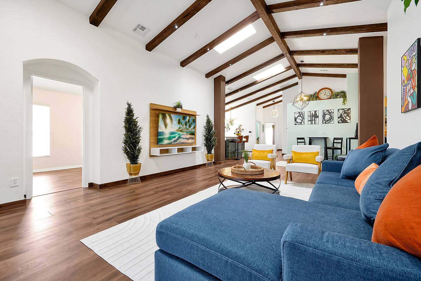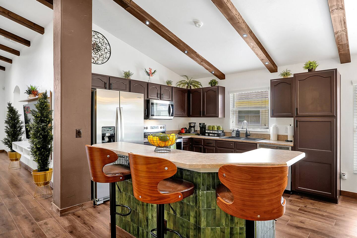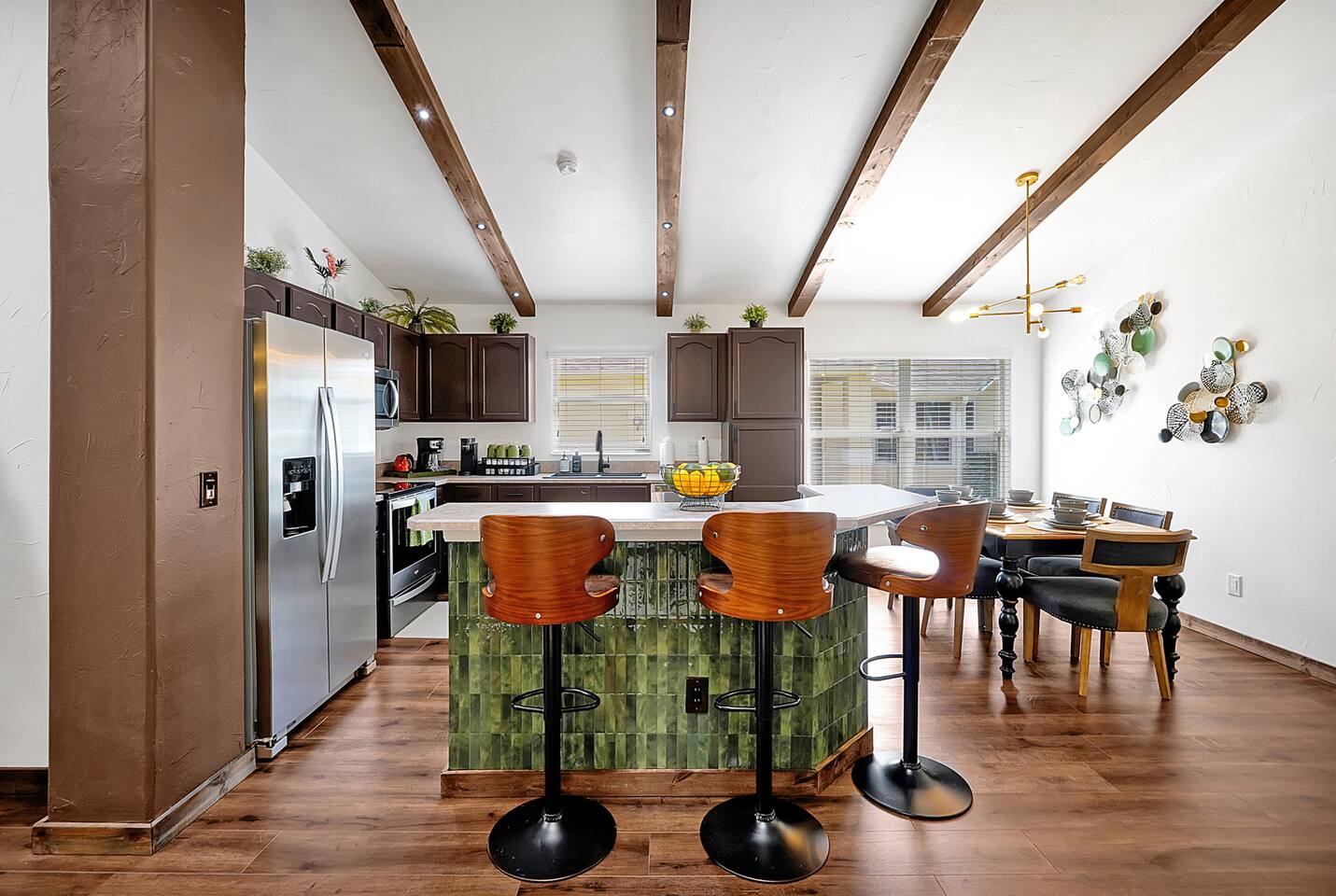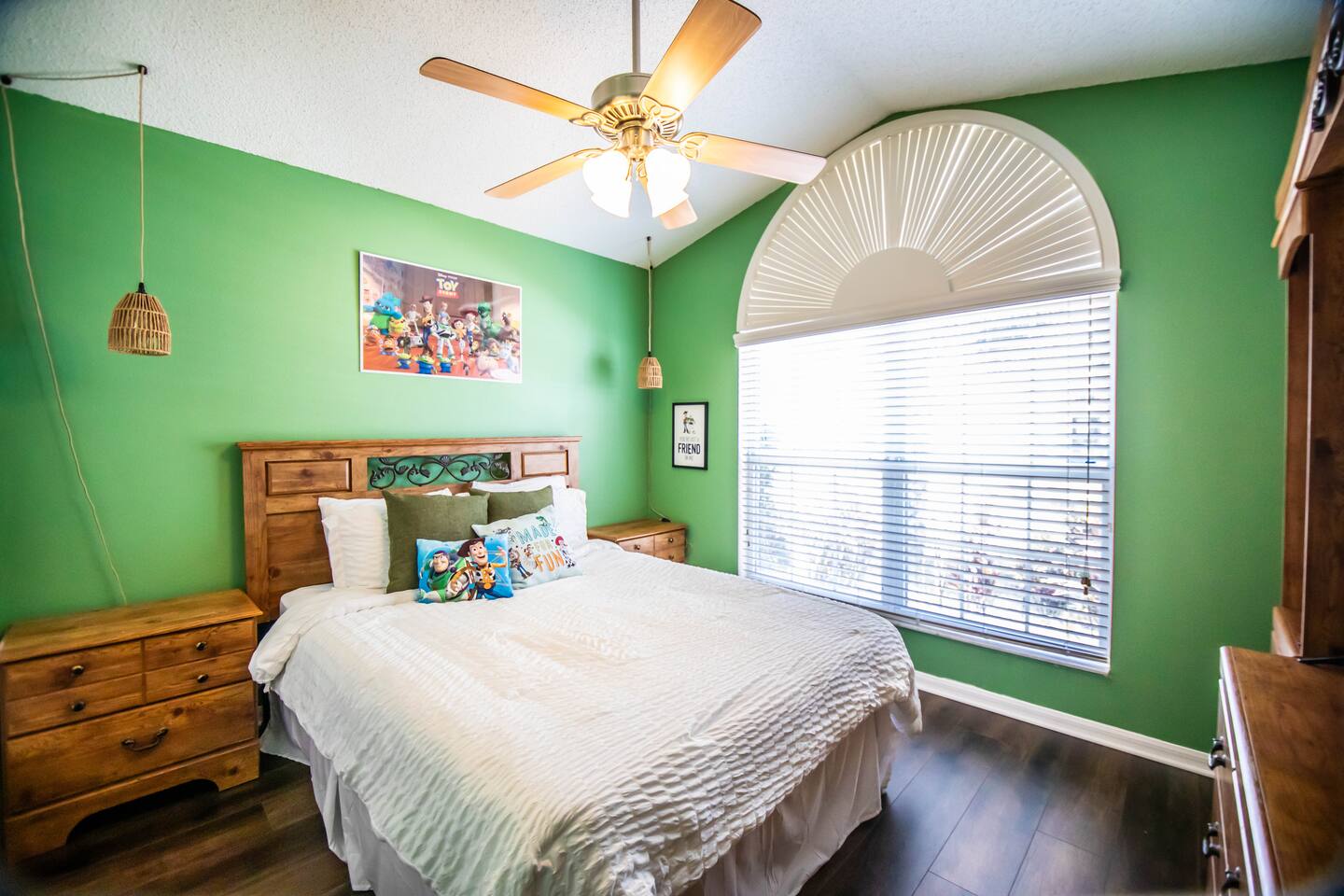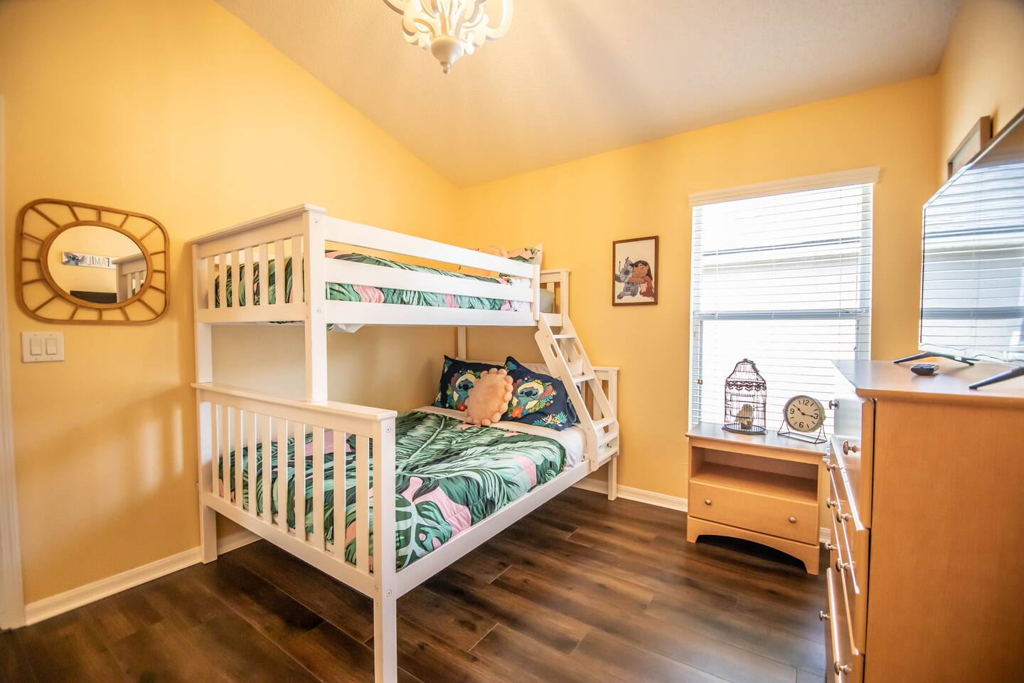 The Chateau is a 5BR/4BA Animal Kingdom Lodge–style retreat just minutes from Disney, Universal, and Orlando attractions. With two master suites, a private pool, hot tub, and outdoor lounge/dining area, this unique escape blends warm, nature-inspired design with modern comfort. Perfect for families and groups to relax, recharge, and create memories after exciting days at the parks, festivals, graduations, or live events. Your unforgettable adventure begins here!