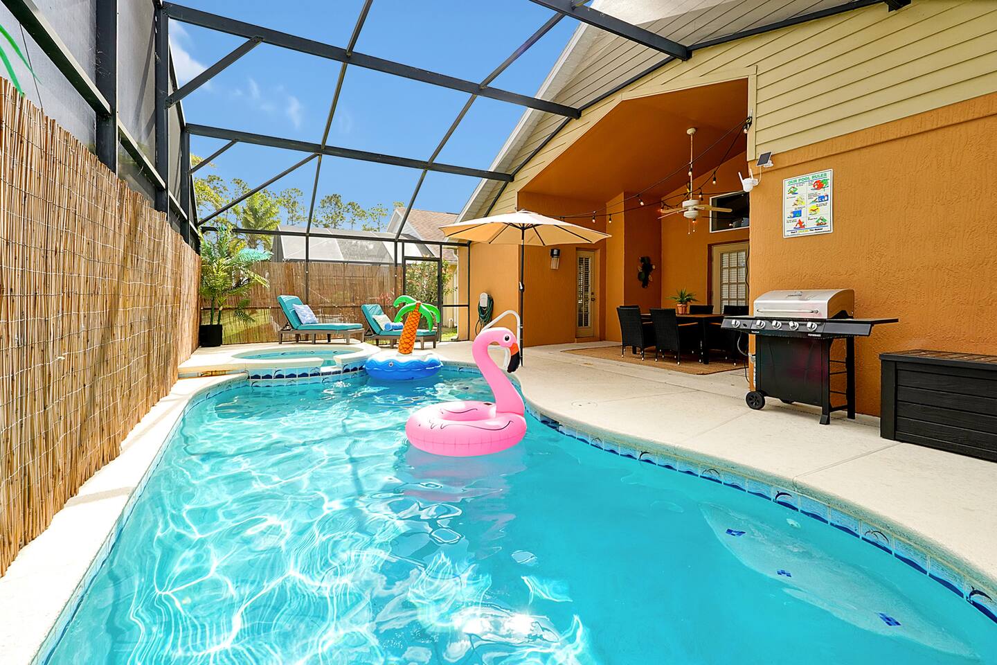 🏡 House Rules for 2507 Oneida Loop, Kissimmee To ensure a safe, enjoyable, and respectful stay for all guests, please adhere to the following house rules: 🔑 Check-In & Check-Out ✔ Check-in: 3:00 PM or later (self-check-in with keypad) ✔ Check-out: 11:00 AM sharp (late check-out may incur additional fees) ✔ Please ensure doors and windows are locked when leaving the home. 🚭 No Smoking Policy 🚫 No smoking or vaping inside the home. A $500 cleaning fee will be charged if evidence of smoking is found. Smoking is permitted outside only, and cigarette butts must be disposed of properly. 🎉 No Parties or Events 🚫 Strictly no parties, large gatherings, or unauthorized events. 🚫 Excessive noise, loud music, or disruptive behavior is prohibited. 🚫 Quiet hours: 10:00 PM – 8:00 AM (community rule). 🏊 Pool & Hot Tub Rules ✔ No diving or running around the pool area. ✔ Children must be supervised at all times. ✔ No glassware near the pool. Please use plastic cups provided. 🛠 Property & Maintenance ✔ Report any damages or issues immediately. Guests are responsible for damages beyond normal wear and tear. ✔ Please do not move furniture or tamper with security devices. ✔ Garbage must be disposed of in the outdoor bins provided. 📜 Liability Waiver ✔ Guests assume all risks associated with using the pool, hot tub, game room, and any home amenities. ✔ The host is not responsible for injuries, lost/stolen belongings, or accidents occurring on the property. ✔ Guests agree to indemnify and hold harmless the host from any claims arising from their stay. By booking this property, you agree to abide by all house rules. Failure to follow the rules may result in eviction without a refund. Thank you for respecting our home—we hope you have a fantastic stay! 🌟🏡