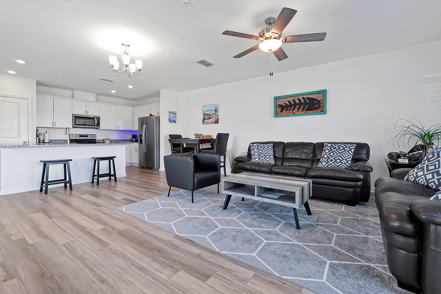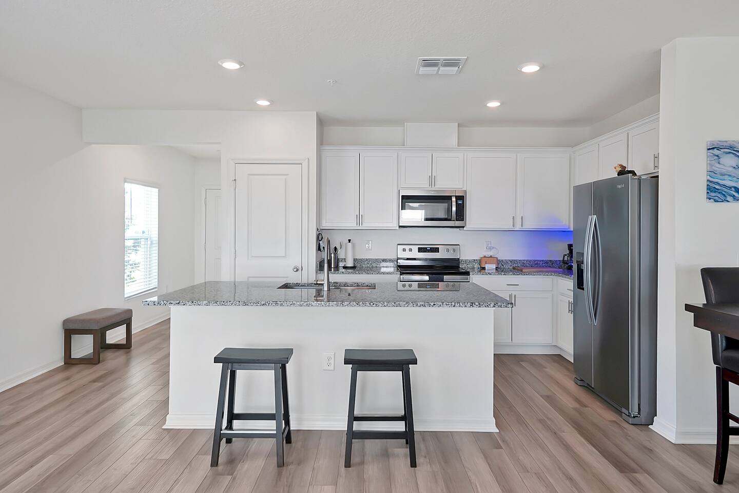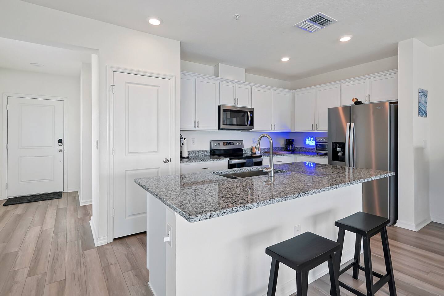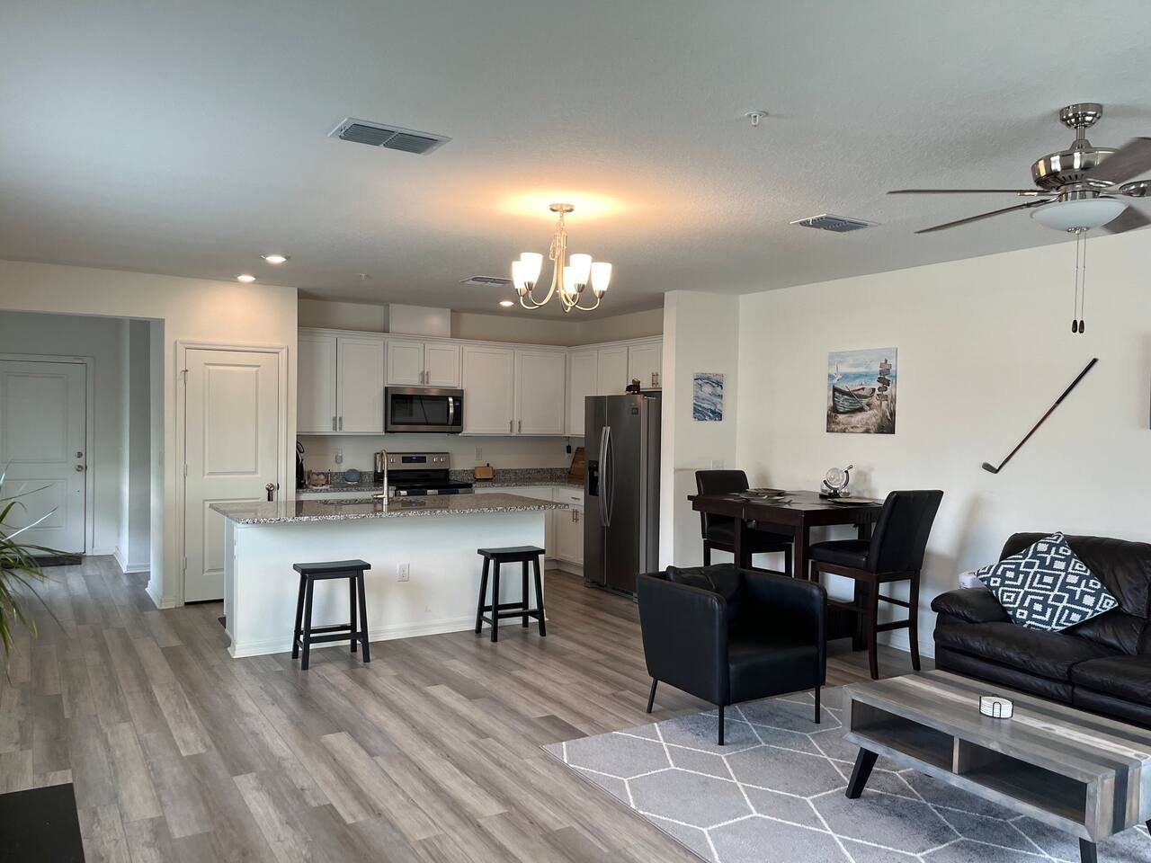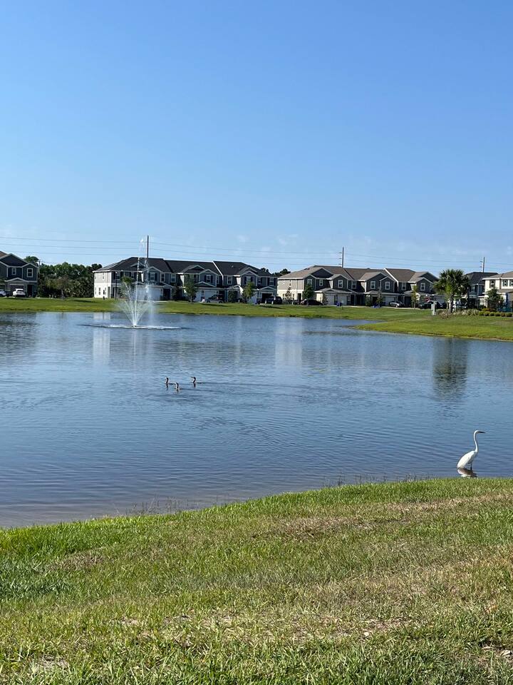 Modern End-Unit Townhome Near SFB Airport & Downtown Sanford Pool • Gym • Family-Friendly Comfort Welcome to your ideal Central Florida retreat! This beautifully designed end-unit townhome blends comfort, convenience, and flexibility—perfect for work trips, family getaways, extended stays, or weekend adventures. Located just 5 minutes from Sanford International Airport (SFB) and Downtown Sanford, you’ll be close to natural springs, riverfront activities, breweries, restaurants, shops, and local attractions. With easy access to I-4, Orlando’s theme parks, golf courses, and beaches are all within 45–60 minutes. ✨ What You’ll Love About This Home Unbeatable Location: 5 minutes to SFB Airport & historic Downtown Sanford Outdoor Adventures: Near Boombah Sports Complex, St. Johns River, Lake Monroe & crystal-clear Florida springs Easy Day Trips: Less than an hour to theme parks, attractions & beaches 🏡 Designed for Comfort & Flexibility Perfectly suited for: Pilots, flight crews & traveling professionals Nurses and medical staff on assignment Families and vacationers exploring Central Florida Inside you’ll enjoy: Spacious living areas with modern décor Smart Roku TVs in each room — stream all your favorite apps using your login High-speed WiFi for remote work, streaming & entertainment Fully equipped kitchen for easy home cooking 🌴 Community & Home Perks Resort-Style Pool: A relaxing, sun-filled spot to unwind Private Gym in Garage: Stay active without leaving the home Playground Nearby: Ideal for families with children Washer & Dryer: Convenient for longer stays and active travelers Private garage + dedicated driveway parking 🚪 Guest Access Guests have full access to the entire townhome (except the master suite, reserved as the owner’s private space), plus all community amenities, the garage gym, and private parking. 🎯 The Perfect Base for Every Trip Whether you’re here for work, sports, outdoor adventures, or sightseeing, this Sanford townhome offers modern comfort, a prime location, and the amenities you need for a seamless stay. Book your stay today and enjoy a stylish, convenient, and welcoming home in the heart of Central Florida!