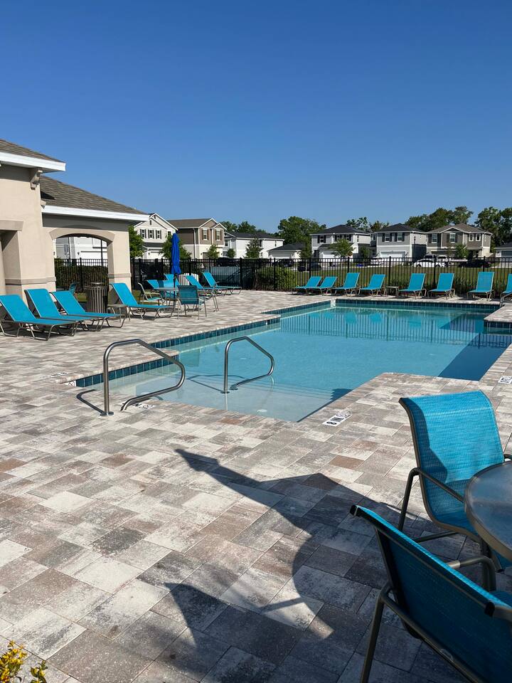 Modern Townhome Near Downtown Sanford, SFB Airport + Pool & Private Gym Enjoy comfort and convenience in this stylish new townhome just minutes from Historic Downtown Sanford, Sanford International Airport (SFB), and the Boombah Sports Complex. Stroll the riverwalk, explore breweries and local dining, or take a short drive to Orlando theme parks and nearby beaches—all less than 45 minutes away.